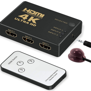 MICROWOLD 3PORT HDMI SWITCH 4K – HDMSWI3 HDMI Switch, Ultra HD 4K x 2K Intelligent 3 Port HDMI Switcher with Remote Control Supports 3D 3 HDMI Inputs / 1 HDMI output Supports 4K Resolutions @ 30Hz Supports 3D Devices Full 2160p Input Video Signal: 0.5-1.0 Volts p-p (TTL) Output Video: